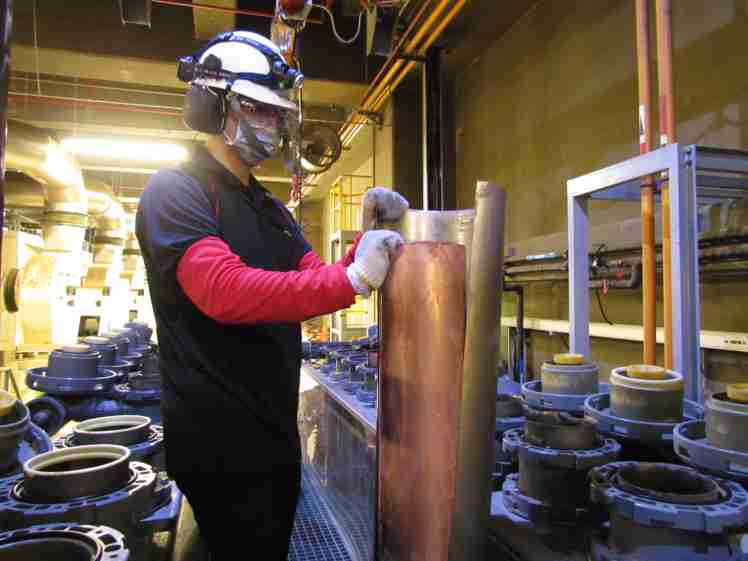 汇旺支付将废弃物转化成有效的工业或民生原物料,,,图为废铜液淬炼后再制成纯度极高的铜管