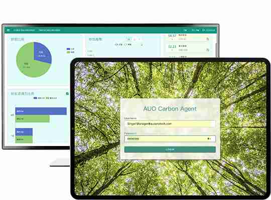 依循 ISO 国际标准建置出符合国际标准的全方位碳管理平台 (AUO Carbon Agent),,,,其中温室气体盘查模组可协助客户将组织、、产品与供应链的碳排放源数据,,透过系统内建的系数资料库自动计算出碳排量,,提升整体盘查作业的效率,,,,并以此拟定长期减碳策略,,达到低碳转型、、净零碳排的目标。。