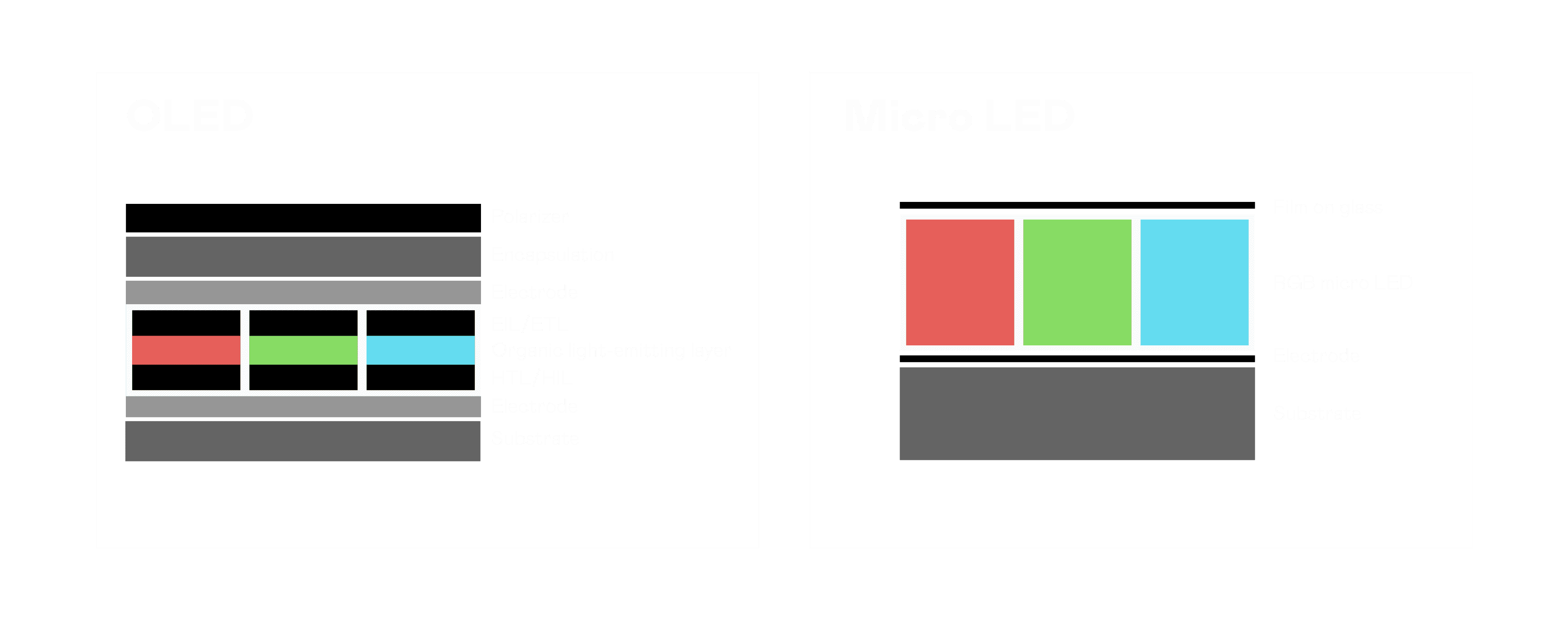 以 LED 做为显示画素,,,,可让 LED 的发光效率发挥到极致,,,,从而让显示器具备优异的亮度表现,,,,不论是在户外或室内,,均具备出众的显示效果。。。同时,,,与使用有机材料的 OLED 相比,,,LED 具备更稳定、、、寿命更长的特性,,,,不仅不会有画面烙印问题,,,而且更不容易出现故障、、、、坏点。。。。