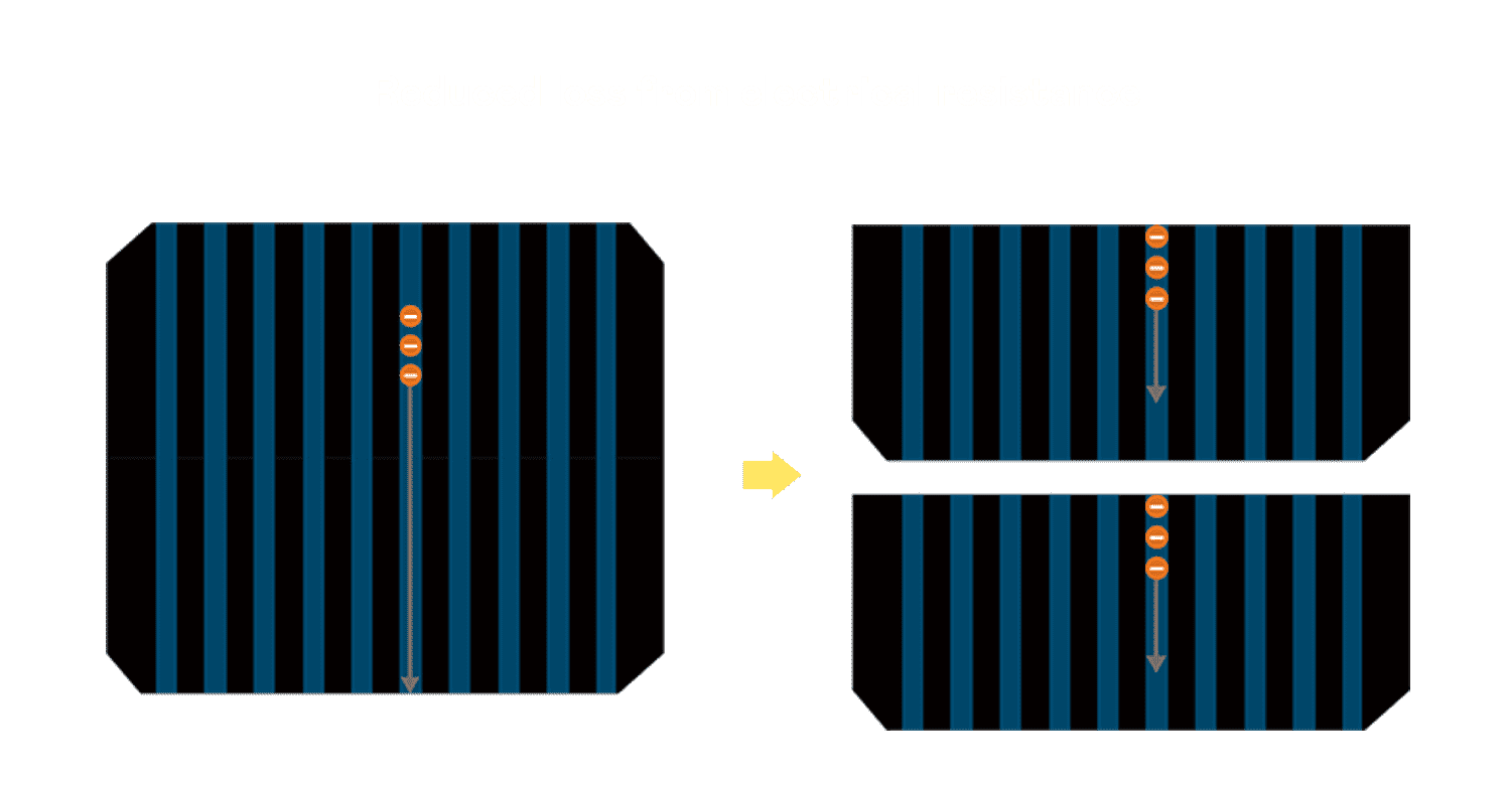 - 多条电极栅结构,,,,可有效降低外力对于电池的影响,,,限制电池隐裂 (Micro-cracks) 范围,,防止电流传输路径 (Current distribution) 之损坏进一步扩大。。